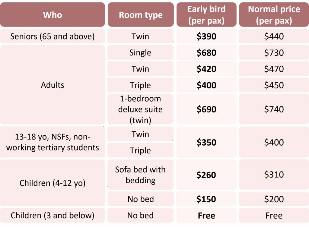 Early Bird Rate Per Pax – Effective 21 Sep 2025 to 30 Nov 2025