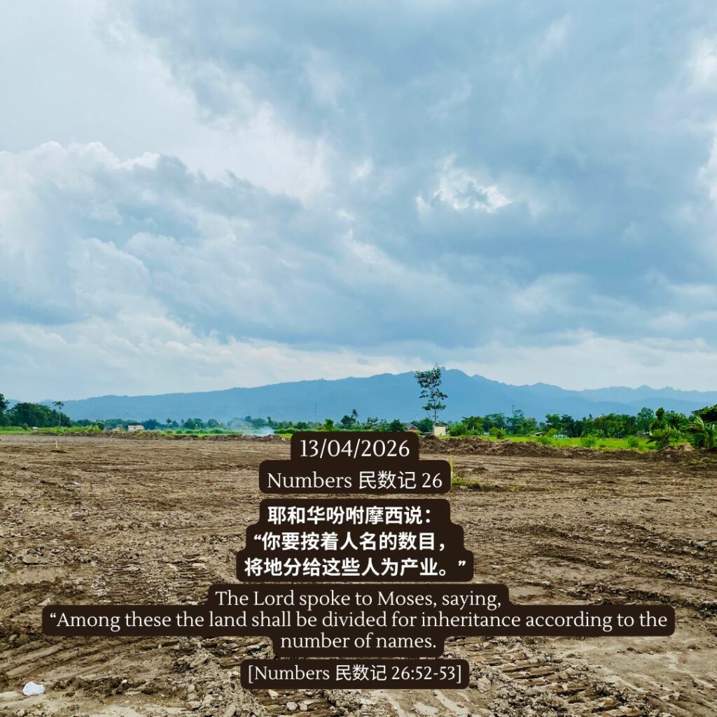 耶和华吩咐摩西说:“你要按着人名的数目,将地分给这些人为产业。” – 民数记 26:52-53