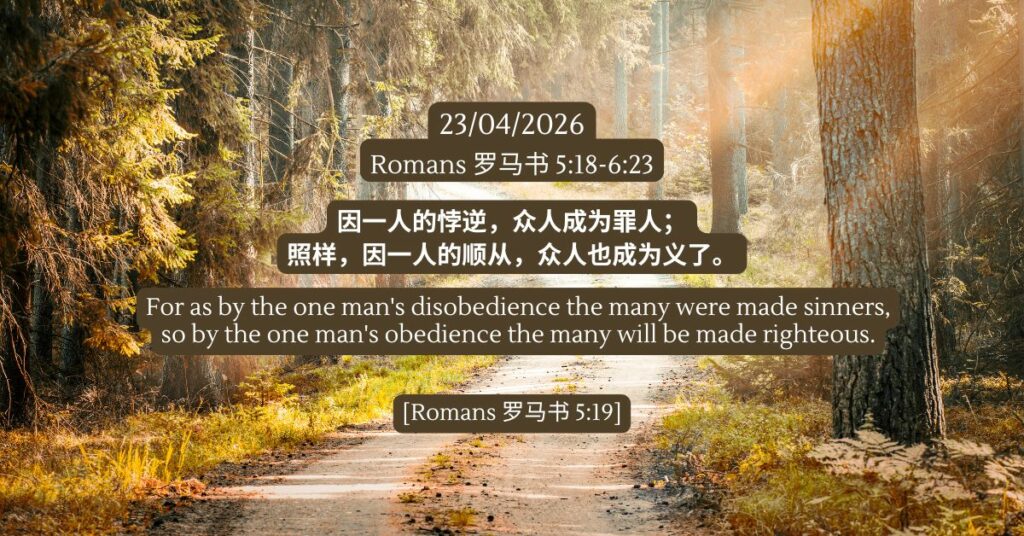 因一人的悖逆,众人成为罪人;照样,因一人的顺从,众人也成为义了。- 罗马书 5:19