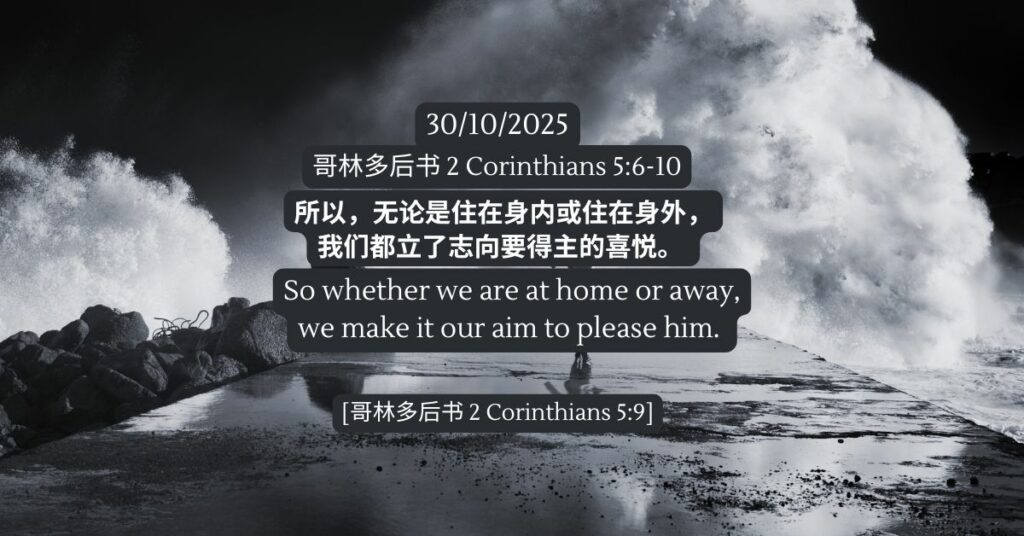 所以,无论是住在身内或住在身外,我们都立了志向要得主的喜悦。 – 哥林多后书 5:9