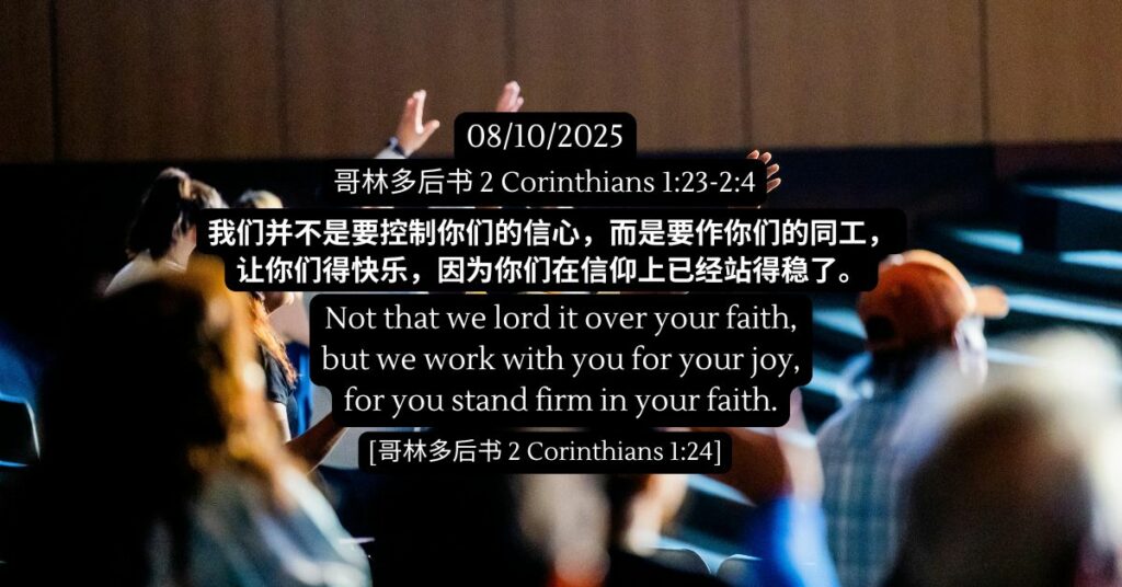 我们并不是要控制你们的信心,而是要作你们的同工,让你们得快乐,因为你们在信仰上已经站得稳了。 – 哥林多后书 1:24